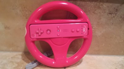 Sometimes when we’re not working on Andrecca, we craft other nerdy things. Becca does a lot with clay, yarn and beads when she can. I usually don’t get too crafty, but this year I decided I wanted to custom paint some controllers for Becca’s birthday. She really likes to get her hands on pink controllers whenever she can. She has a pink Wii Remote but there aren’t a ton of other accessories out there that are pink, unless you want to chance it with off brands. Becca is a big fan of the Mario Kart franchise, especially Double Dash. So I decided that she needed to have a pink Wavebird GC controller along with a pink Wii Wheel.